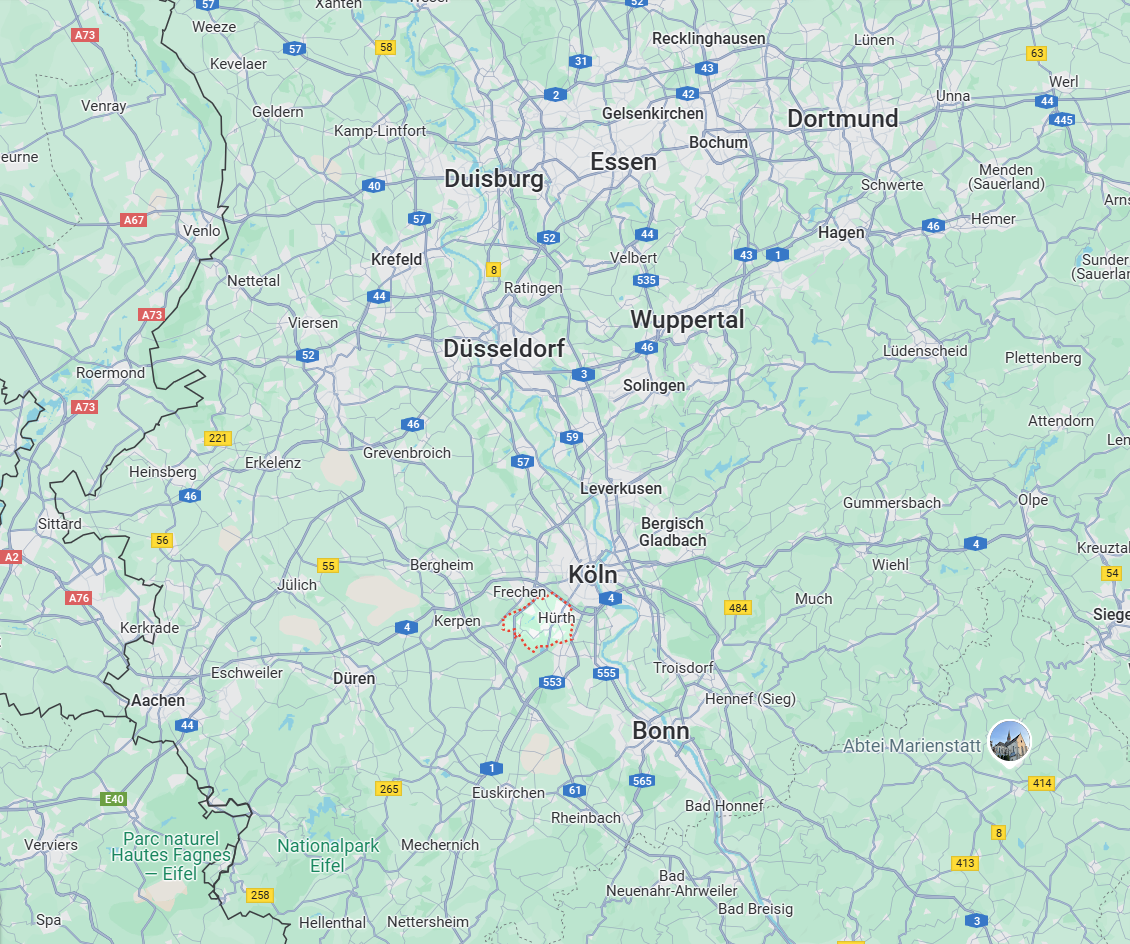 Unser Einzugsgebiet ist etwa 50 km groß und liegt um Hürth herum. Hierzu gehören neben großen Städten wie Köln, Düsseldorf, Bonn, Mönchengladbach oder Wuppertal, sondern auch kleinere Städte und Gemeinden wie Brühl, Bergisch Gladbach, Bergheim, Euskirchen, Frechen, Krefeld, Leverkusen, Neuss, Pulheim, Remscheid, Solingen und viele andere. Wir unterstützen Sie bei Umzügen innerhalb unseres Einzugsgebiets sowie in andere Bundesländer und benachbarte Mitgliedsstaaten der Europäischen Union oder des Schengenraums.